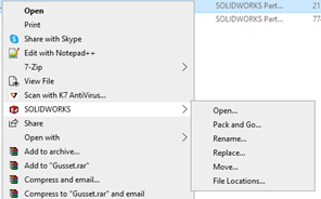 - Right-clicking on any SOLIDWORKS file in Windows File Explorer
